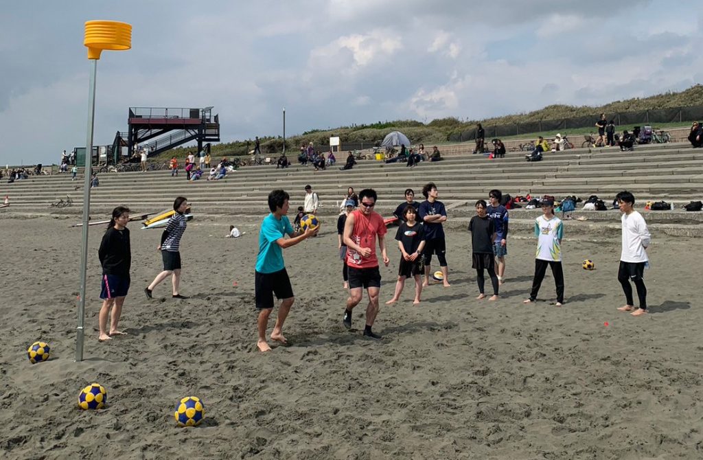 第一回練習会と同様、VICUSコーフボール杉並の方々が中心となって、ビーチコーフボールの体験会が開催されました。